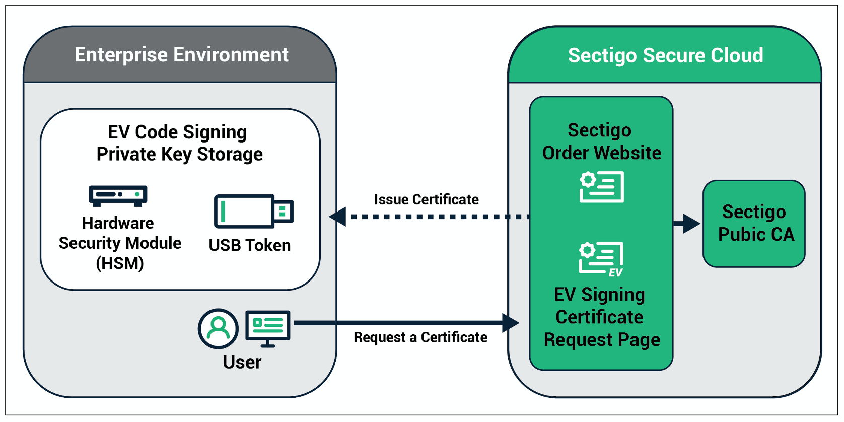 To help protect you, an EV Code Signing Certificate requires that the key be stored in a high assurance, FIPS 140-2 or above standard-compliant hardware. There are USB tokens that meet this requirement and add another layer of protection with a PIN. Alternatively, you could store the key(s) in your organization’s Hardware Security Module (HSM) on-premise.
