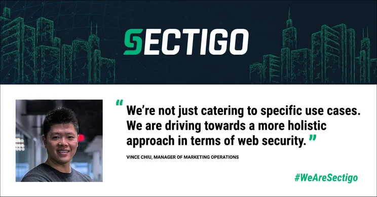 No one loves an extraordinary transformation more than Vince Chiu, Sectigo’s Marketing Operations Manager. Vince, a cybersecurity industry expert with considerable experience in the SSL space, joined Sectigo in 2018, timed with the company’s brand transition. From setting and meeting aggressive KPIs to helping with brand strategy, Vince and his team have brought new energy to the marketing department, finding exciting ways to leverage data to build better solutions.