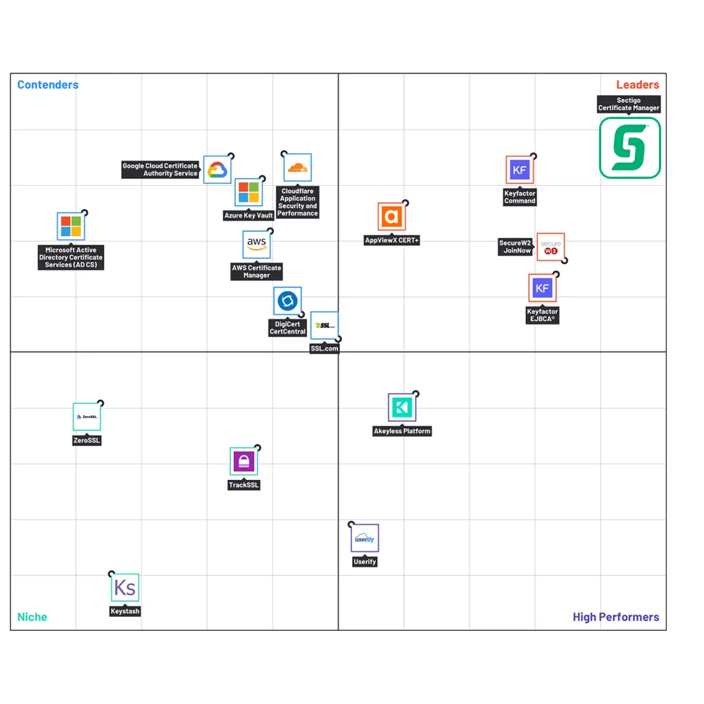Sectigo sigue liderando las categorías de gestión del ciclo de vida de los certificados (CLM) y certificados SSL/TLS.