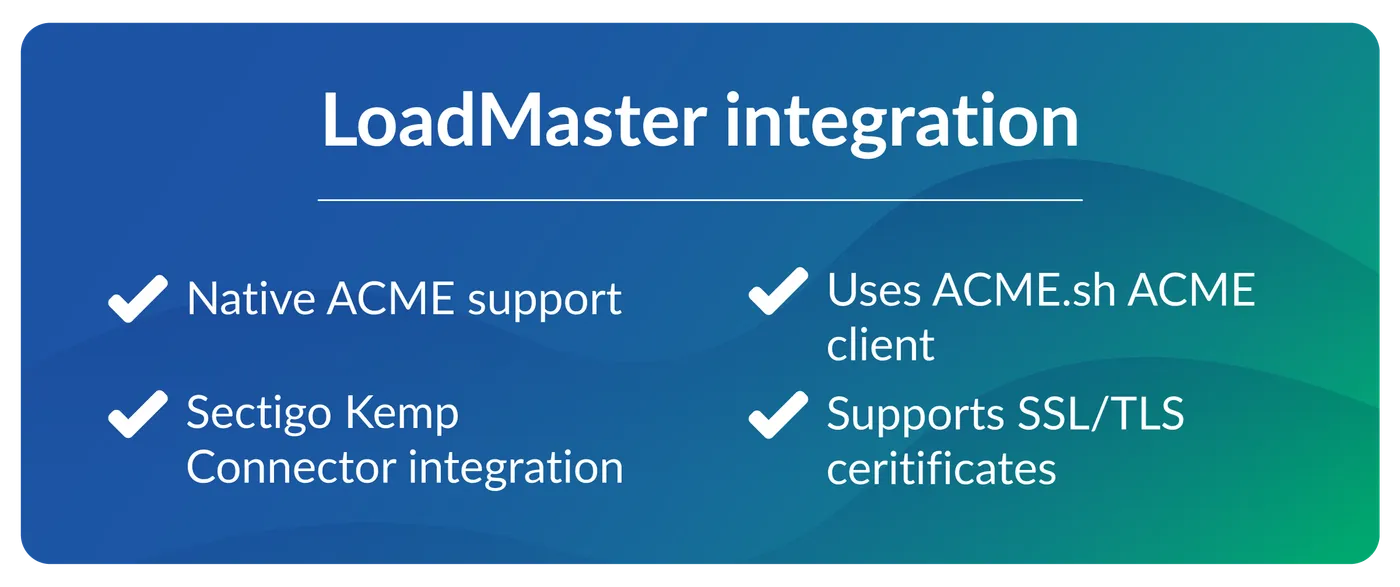 Kemp LoadMaster ofrece una entrega de aplicaciones segura y de alto rendimiento en diversos entornos. Con Sectigo Certificate Manager (SCM), los equipos pueden automatizar los ciclos de vida de los certificados TLS/SSL en autoridades de certificación (CA) públicas y privadas a través de API REST.