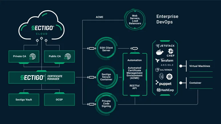 Sectigo®, a leading provider of automated digital identity management and web security solutions, today released Chef, Jenkins, JetStack Cert-Manager, Puppet, and SaltStack integrations for its certificate management platform. The new integrations, which expand upon Sectigo’s first round of DevOps integrations, seize the benefits of automation for DevOps environments and further aid DevSecOps teams in speeding application deployment by using automation to provision certificates.