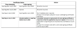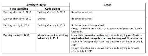 To ensure continued correct performance, developers should re-sign and deploy all affected Java code prior to July 9, 2019.