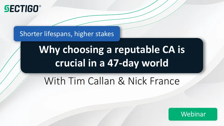 As certificate lifespans shrink to just 47 days, organizations face mounting pressure to stay secure, agile, and always online. Join our webinar on June 24 to explore why selecting a reputable Certificate Authority (CA) is more critical than ever to avoiding downtime and keeping your business compliant. We’ll break down the shift to shorter lifespans, the increasing risks of downtime and misissuance, and the essential role a trusted CA plays in maintaining security and compliance. Discover how value-added services go beyond the certificate to support your overall infrastructure. Learn how to evaluate CA reputation effectively and why it directly impacts your agility and protection. See how Sectigo empowers organizations to thrive securely at the speed of 47-day cycles.